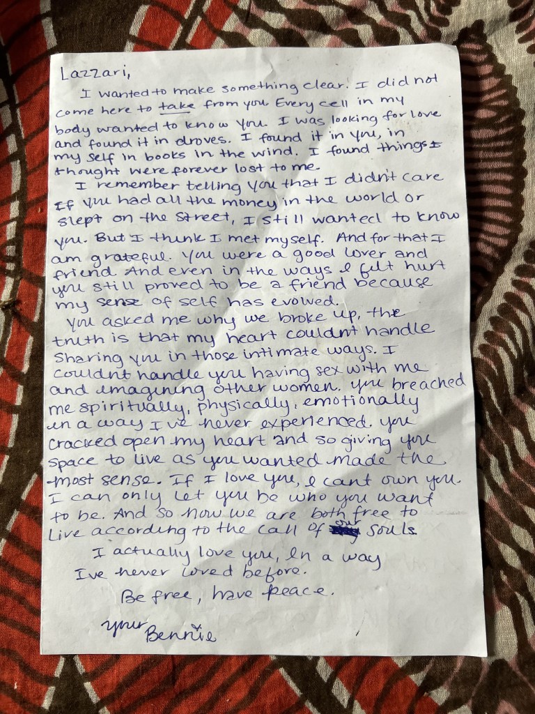 Between polyamory and the distance, I wasn’t sure what our future looked like anymore. I didn’t want to have children in that sort of dynamic. Other things felt different. He felt distant. This didn’t feel like the same man who said he wanted to give me everything I’d ever wanted. When it was time to go home, I didn’t cry, but I hugged and kissed him, saying I’d see him soon. I wasn’t ready to give up, but i wasn’t sure what it looked like.